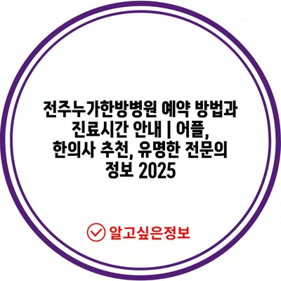 전주누가한방병원 예약 방법과 진료시간 공지 | 어플, 한의사 추천, 유명한 전연락 정보 2025에 대해 알아봅시다.