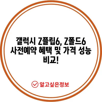 갤럭시 사전예약 혜택과 Z플립6, Z폴드6 사전구매 알림신청, 가격 및 성능에 대해 알아보세요. AI폴더블폰에 대한 정보도 포함되어 있습니다.