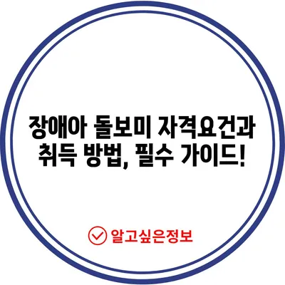 💡 장애아 돌보미 자격 요건과 취득 방법을 자세히 알아보세요! 💡