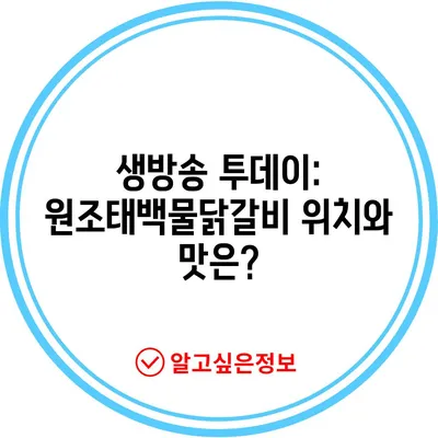 생방송 투데이 물닭갈비 원조태백물닭갈비 위치에 대한 자세한 안내와 맛집 소개, 메뉴, 가격, 방문 후기 등의 정보를 제공합니다.