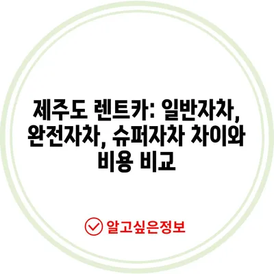제주도 렌트카: 일반자차, 완전자차, 슈퍼자차 차이와 비용 비교