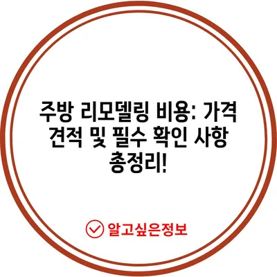 💡 주방 리모델링 비용과 예산을 미리 알아보세요! 💡