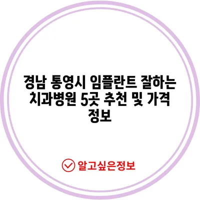 경남 통영시에서 임플란트를 잘하는 치과병원을 찾고 계신가요? 본 포스팅에서는 경남 통영시의 여러 치과병원과 함께 임플란트 가격 정보를 자세히 소개하겠습니다. 이 글을 통해 독자 여러분들이 임플란트 치료에 대한 중요한 정보와 다양한 선택지를 얻으시길 바랍니다.