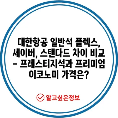 대한항공 일반석 플렉스, 세이버, 스탠다드 차이 비교 – 프레스티지석과 프리미엄 이코노미 가격은?