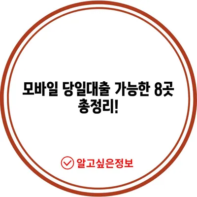 모바일 당일대출 가능한곳 8가지를 상세히 정리했습니다. 각 대출 상품의 조건과 이자 정보를 확인하고 자신에게 맞는 상품을 선택하세요!