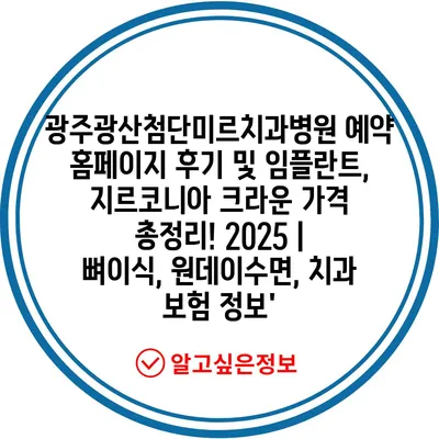 광주광산첨단미르치과병원 예약 홈페이지 후기 및 임플란트, 지르코니아 크라운 가격 총정리! 2025 | 뼈이식, 원데이수면, 치과 보험 정보