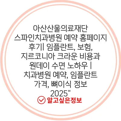 아산산울의료재단 스파인치과병원 예약 홈페이지 후기| 임플란트, 보험, 지르코니아 크라운 비용과 원데이 수면 노하우 | 치과병원 예약, 임플란트 가격, 뼈이식 정보 2025