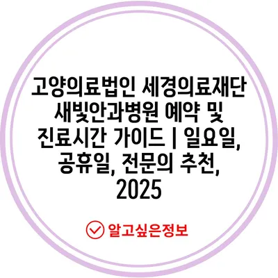 고양의료법인 세경의료재단 새빛안과병원 예약 및 진료시간 설명서 | 일요일, 공휴일, 전연락 추천, 2025