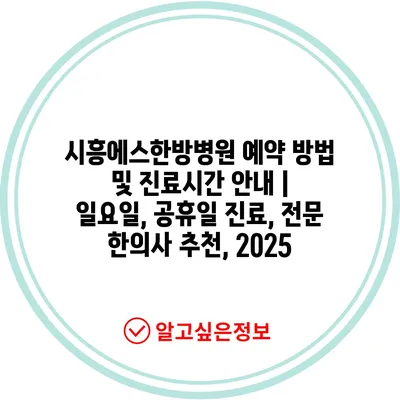 시흥에스한방병원 예약 방법 및 진료시간 공지 | 일요일, 공휴일 진료, 전문 한의사 추천, 2025 에 대해 자주 묻는 질문 TOP 5