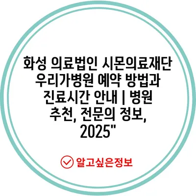 화성 의료법인 시몬의료재단 우리가병원 예약 방법과 진료시간 공지 | 병원 추천, 전연락 정보, 2025에 대해 자주 묻는 질문 TOP 5