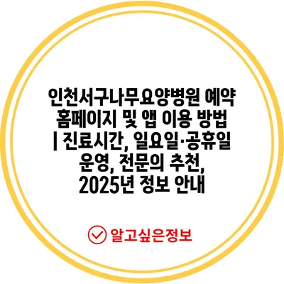 인천서구나무요양병원 예약 홈페이지 및 앱 이용 방법 | 진료시간, 일요일·공휴일 운영, 전연락 추천, 2025년 정보 공지에 대해 자주 묻는 질문 TOP 5