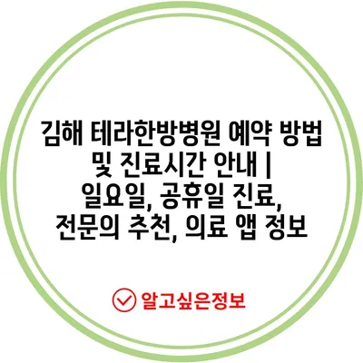 김해 테라한방병원 예약 방법 및 진료시간 공지 | 일요일, 공휴일 진료, 전연락 추천, 의료 앱 정보에 대해 자주 묻는 질문 TOP 5