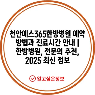 ✅ 천안예스365한방병원의 진료시간과 예약 방법을 자세히 알아보세요.