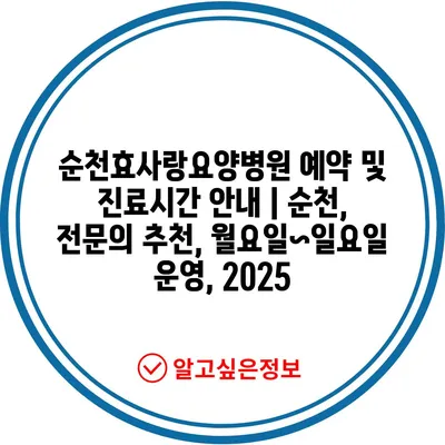 순천효사랑요양병원 예약 및 진료시간 공지 | 순천, 전연락 추천, 월요일~일요일 운영, 2025 에 대해 자주 묻는 질문 TOP 5