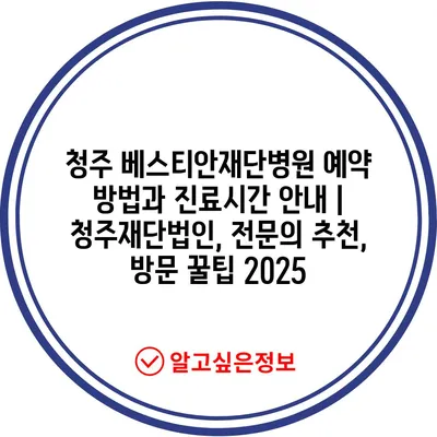 청주 베스티안재단병원 예약 방법과 진료시간 공지 | 청주재단법인, 전연락 추천, 방문 꿀팁 2025 에 대해 자주 묻는 질문 TOP 5