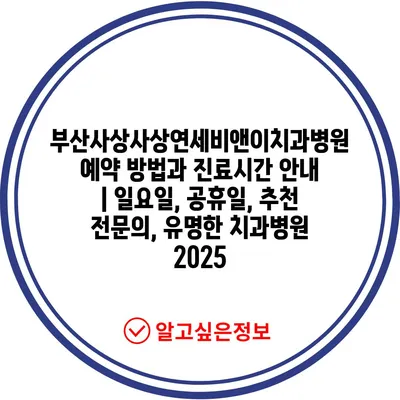 부산사상사상연세비앤이치과병원 예약 방법과 진료시간 안내 | 일요일, 공휴일, 추천 전문의, 유명한 치과병원 2025