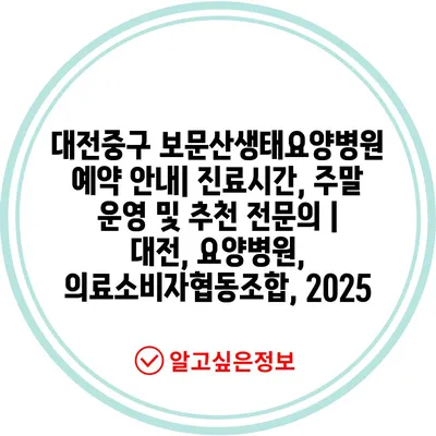대전중구 보문산생태요양병원 예약 공지| 진료시간, 주말 운영 및 추천 전연락 | 대전, 요양병원, 의료소비자협동조합, 2025 에 대해 자주 묻는 질문 TOP 5