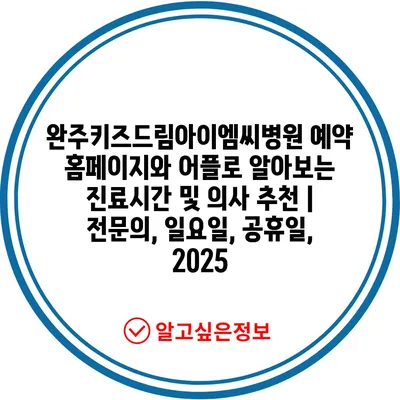 완주키즈드림아이엠씨병원 예약 홈페이지와 어플로 알아보는 진료시간 및 의사 추천 | 전연락, 일요일, 공휴일, 2025 에 대해 자주 묻는 질문 TOP 5
