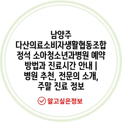 남양주 다산의료소비자생활협동조합 정석 소아청소년과병원 예약 방법과 진료시간 공지 | 병원 추천, 전연락 소개, 주말 진료 정보 에 대해 자주 묻는 질문 TOP 5