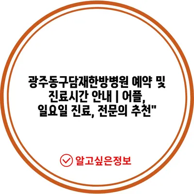 ✅ 광주동구담재한방병원의 진료시간과 예약 방법을 알아보세요.
