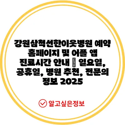 강원삼척선한이웃병원 예약 홈페이지 및 어플 앱 진료시간 공지 | 일요일, 공휴일, 병원 추천, 전연락 정보 2025