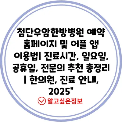 첨단우암한방병원 예약 홈페이지 및 어플 앱 이용법| 진료시간, 일요일, 공휴일, 전연락 추천 총정리 | 한의원, 진료 공지, 2025″ 에 대해 자주 묻는 질문 TOP 5