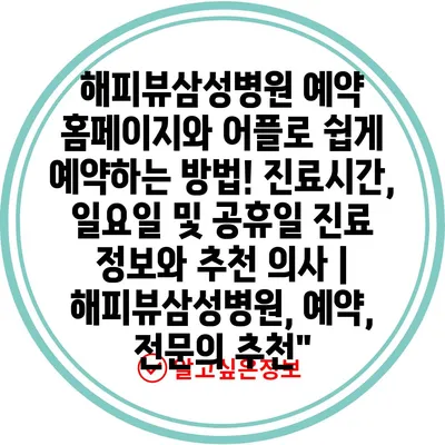 해피뷰삼성병원의 예약 방법과 꿀팁을 지금 바로 알아보세요!