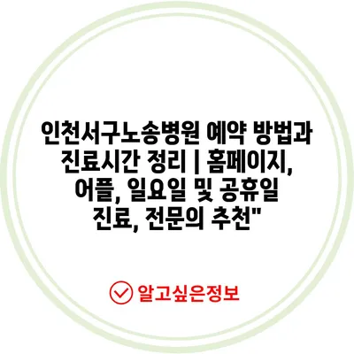 인천서구노송병원 예약 방법과 진료시간 정리 | 홈페이지, 어플, 일요일 및 공휴일 진료, 전문의 추천”