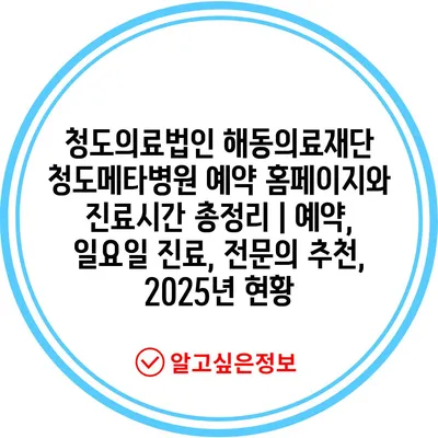 청도의료법인 해동의료재단 청도메타병원 예약 홈페이지와 진료시간 총정리 | 예약, 일요일 진료, 전연락 추천, 2025년 현황 에 대해 자주 묻는 질문 TOP 5