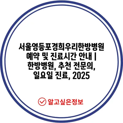 ✅ 서울영등포경희우리한방병원 예약 방법을 상세히 알아보세요.