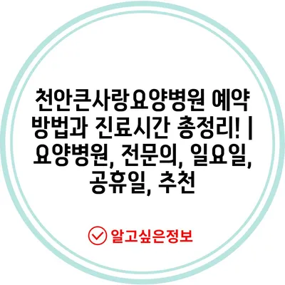 천안큰사랑요양병원 예약 방법과 진료시간 총정리! | 요양병원, 전연락, 일요일, 공휴일, 추천에 대해 자주 묻는 질문 TOP 5