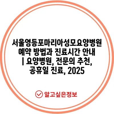 서울영등포마리아성모요양병원 예약 방법과 진료시간 공지 | 요양병원, 전연락 추천, 공휴일 진료, 2025 에 대해 자주 묻는 질문 TOP 5