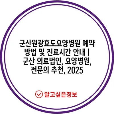 ✅ 군산원광효도요양병원 예약 방법을 상세히 알아보세요.