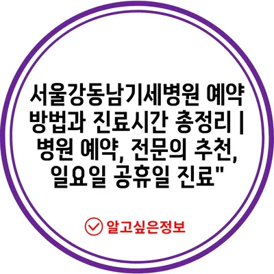 서울강동남기세병원 예약 방법과 진료시간 총정리 | 병원 예약, 전연락 추천, 일요일 공휴일 진료에 대해 자주 묻는 질문 TOP 5