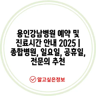 용인강남병원 예약 및 진료시간 공지 2025 | 종합병원, 일요일, 공휴일, 전연락 추천