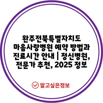 완주전북특별자치도 마음사랑병원 예약 방법과 진료시간 공지 | 정신병원, 전문가 추천, 2025 정보에 대해 자주 묻는 질문 TOP 5