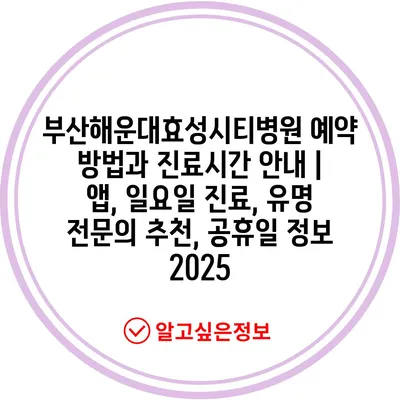 부산해운대효성시티병원 예약 방법과 진료시간 공지 | 앱, 일요일 진료, 유명 전연락 추천, 공휴일 정보 2025 에 대해 자주 묻는 질문 TOP 5
