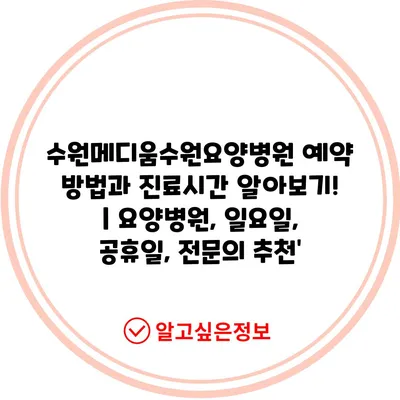✅ 수원메디움수원요양병원의 예약 방법과 진료 시간을 지금 바로 알아보세요!