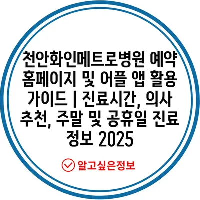 천안화인메트로병원 예약 홈페이지 및 어플 앱 활용 설명서 | 진료시간, 의사 추천, 주말 및 공휴일 진료 정보 2025에 대해 소개합니다.