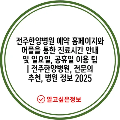 ✅ 전주한양병원의 예약 방법과 진료시간을 알아보세요!