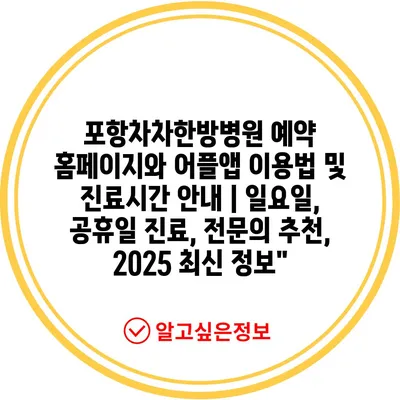 포항차차한방병원 예약 홈페이지와 어플앱 이용법 및 진료시간 공지 | 일요일, 공휴일 진료, 전연락 추천, 2025 최신 정보