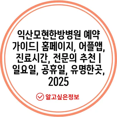 ✅ 익산모현한방병원 예약 방법을 지금 바로 알아보세요!