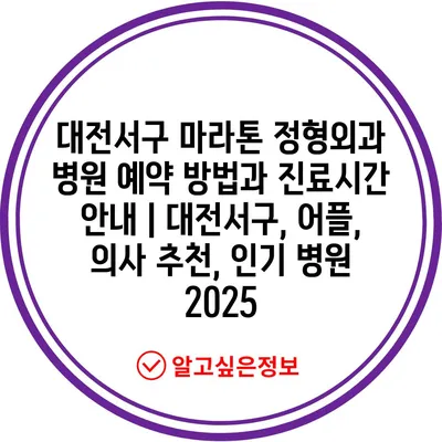 ✅ 대전서구 마라톤 정형외과 병원 예약 절차를 간편하게 확인해 보세요.