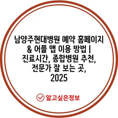 남양주현대병원 예약 홈페이지 & 어플 앱 이용 방법 | 진료시간, 종합병원 추천, 전문가 잘 보는 곳, 2025 에 대해 자주 묻는 질문 TOP 5