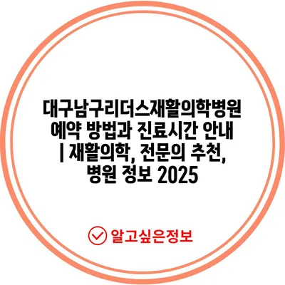 ✅ 대구남구리더스재활의학병원 예약 방법과 진료시간을 빠르게 알아보세요.