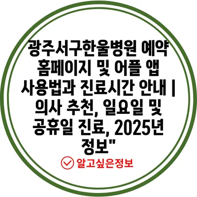 광주서구한울병원 예약 홈페이지 및 어플 앱 사용법과 진료시간 공지 | 의사 추천, 일요일 및 공휴일 진료, 2025년 정보에 대해 자주 묻는 질문 TOP 5