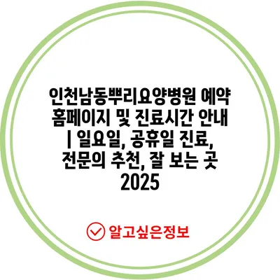 인천남동뿌리요양병원 예약 홈페이지 및 진료시간 공지 | 일요일, 공휴일 진료, 전연락 추천, 잘 보는 곳 2025 에 대해 자주 묻는 질문 TOP 5