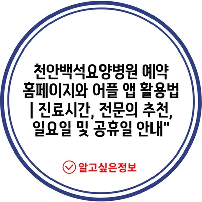 ✅ 천안백석요양병원 예약 방법과 혜택을 자세히 알아보세요.