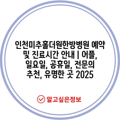✅ 인천미추홀더원한방병원의 예약 방법과 진료 시간을 쉽게 알아보세요.