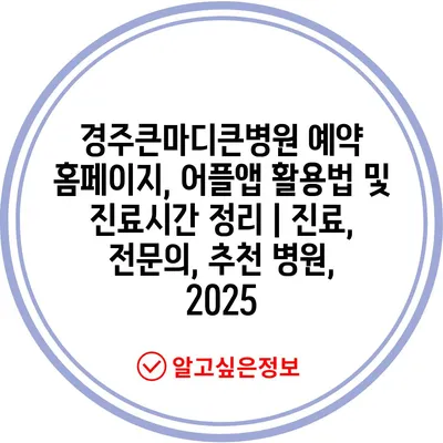 경주큰마디큰병원 예약 홈페이지, 어플앱 활용법 및 진료시간 정리 | 진료, 전연락, 추천 병원, 2025에 대해 알아보겠습니다.